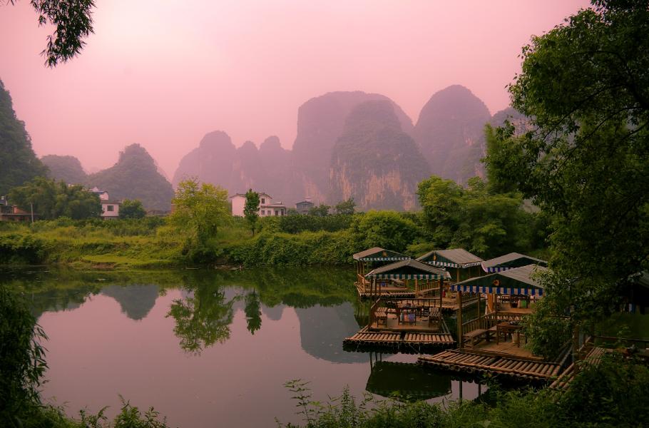 Čínské město Yangshuo má zcela unikátní polohu. Leží u řek Li Jiang a Yulong, které už samy o sobě tvoří neobyčejné okolí. Ze všech stran je navíc obklopeno krasovými homolemi, jejichž krása se odkrývá právě při pohledu z obou říčních roků.