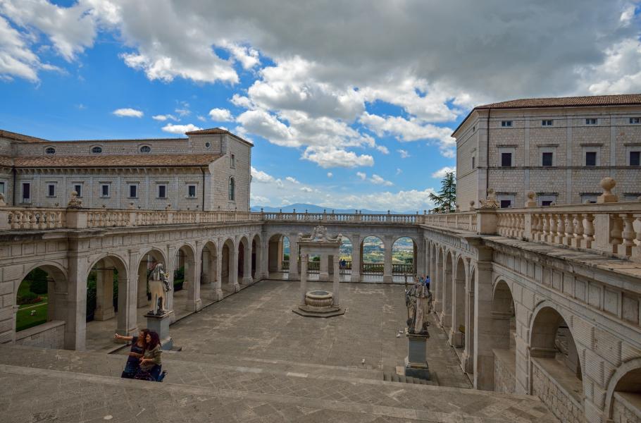 Klášter Montecassino založil již roku 529 svatý Benedikt z Nursie nedaleko města Cassino, jež leží asi 130 km jihovýchodně od Říma. Bitva o klášter v roce 1944 pak patřila k nejdelším a nejkrvavějším střetům druhé světové války. Strategická poloha na vyvýšeném kopci však způsobila, že bylo místo několikrát zničeno i předtím – už roku 584 jej vydrancovali Langobardi a později lehlo popelem ještě třikrát. Naposledy tedy hrálo v jeho zkáze roli rozhodnutí Spojenců klášter bombardovat proto, že jej údajně obsadili Němci. Každopádně, díky poválečné rekonstrukci vznikla věrná kopie památky a v roce 1964 ji mohl papež Pavel VI. znova vysvětit.