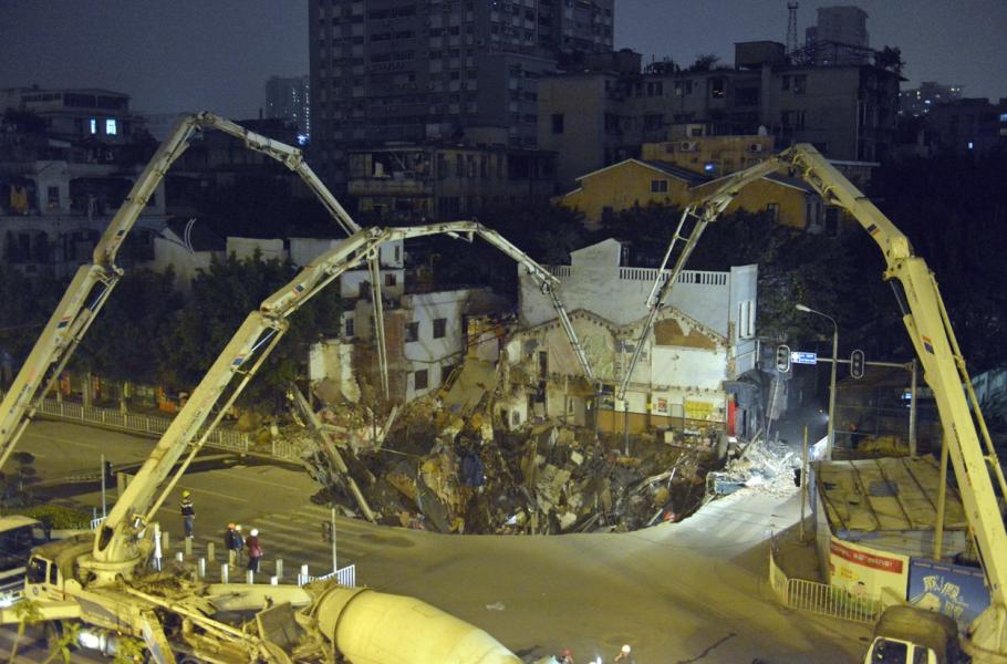 V roce 2013 zmizela v závrtu v provincii Kuang-tung v jižní Číně celá budova. Vzniklá díra byla hluboká zhruba 10 metrů a pokrývala plochu více než 90 metrů čtverečných. Během zřícení budovy nikdo jako zázrakem nezemřel ani se nezranil.