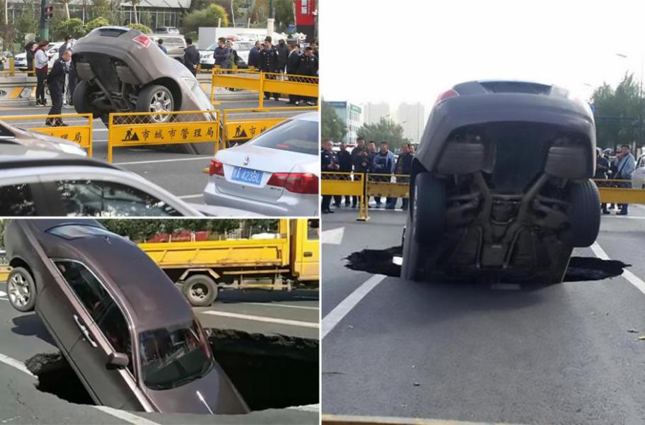 „Čekal jsem na zelenou a když se konečně rozsvítila, silnice přede mnou najednou zmizela,“ tak popsal v říjnu 2017 svůj nevšední zážitek z cest ulicemi čínského Charbinu nešťastný řidič Rolls-Royce. Jeho auto za 5 milionů jüanů (v přepočtu zhruba 16 milionů korun) v mžiku spolkla přibližně dvoumetrová díra. Řidiči se naštěstí nic nestalo a jeho vůz se podařilo za pomoci těžké techniky vyprostit.