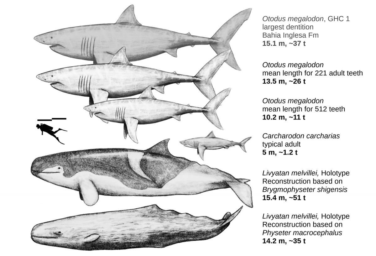 Paleontologové v Peru prozkoumali lebky vyhynulých druhů vorvaňů z třetihor, kteří žili v období miocénu – přibližně před 7 miliony let. Nalezli na nich neklamné známky stisku čelistí megalodonů, a také menších druhů žraloků, včetně dnes stále žijících žraloků bílých (Carcharodon carcharias). V některých případech byly lebky vystaveny více než tuctu případů okusování žraloky.