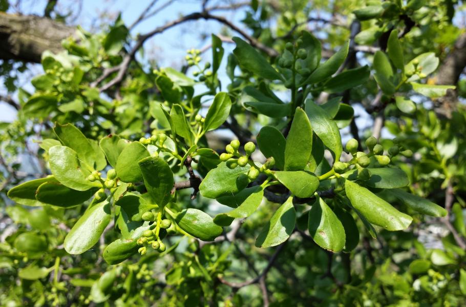 Ekologie: parazituje na celé řadě listnatých keřů a stromů (např. Acacia, Cassia, Casuarina, Eucalyptus, Grevillea, Hakea, Melaleuca , Santalum, Senna) obvykle na sušších stanovištích