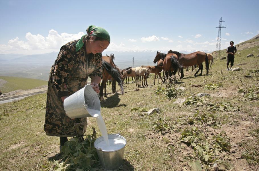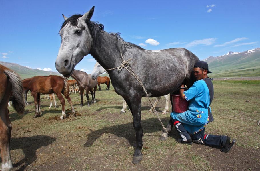 Ochutnejte kyrgyzský kumys: Alkoholem kořeněný kefír z kobylího mléka