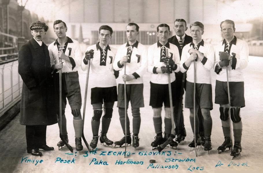 V roce 1920 se lední hokej představil i v rámci letních olympijských her v Antverpách. Turnaje se kromě evropských mužstev poprvé zúčastnily také týmy Kanady a USA, které tvořili profesionálové z elitních severoamerických soutěží. Ti své evropské protivníky převyšovali nejen hokejovým umem, ale také mnohem kvalitnější výstrojí. „V našem skromném vybavení jsme si připadali jako pápěrky proti těm pořízkům, navlečeným do kůže, plsti, řemení a vložek z hliníkového plechu. Oči jsme mohli nechat na jejich ‚hagenkách‘, nožích s hliníkovými ploškami, se závistí jsme si prohlíželi i jejich zásobu holí. Ještě víc nás však očarovala kanadská bruslařská technika. Pohybovali se po ledě jako ďasi,“ vzpomínal později reprezentant Karel Hartmann.