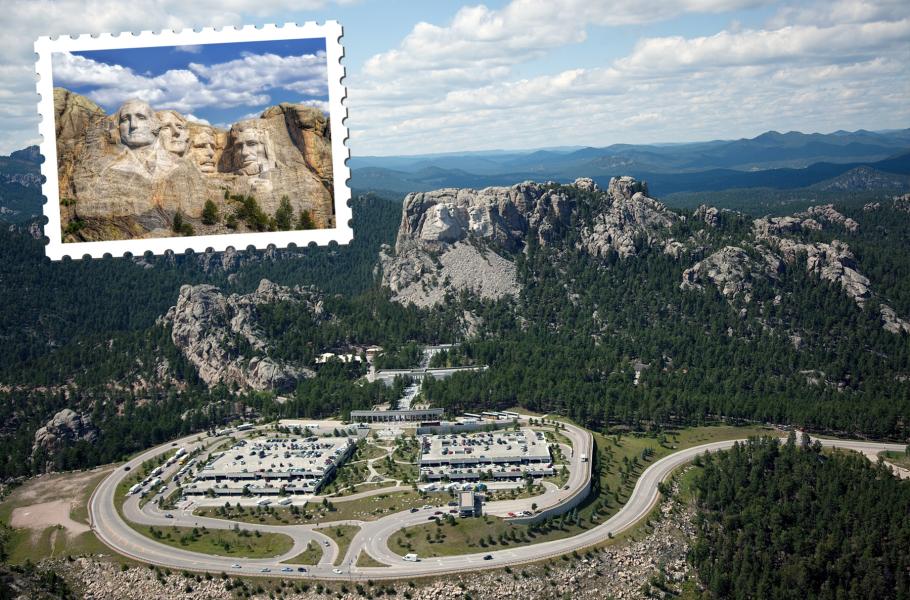 Čtveřice hlav amerických prezidentů v Mount Rushmore vznikala mezi roky 1927 a 1941, načež tesání do žuly zastavil nedostatek financí. Všichni státníci měli být původně vyobrazeni od pasu nahoru, takže dnes zblízka vynikne, jak nepatřičně malé se vlastně hlavy vůči zbytku skalního masivu jeví. Ve větší vzdálenosti si pak divák uvědomí, že ačkoliv na snímcích monument vypadá jako ukrytý uprostřed panenské přírody, ve skutečnosti ho obklopuje rozsáhlá turistická infrastruktura. (foto: Wikimedia Commons, Carol M. Highsmith, CC0)