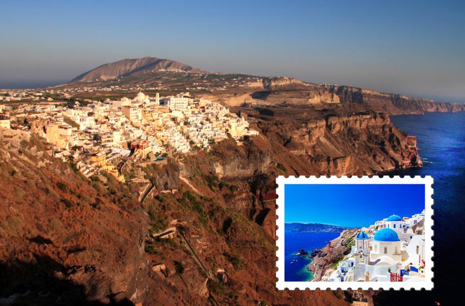 Hlavní město souostroví Santorini prezentují katalogy cestovních kanceláří obvykle z perspektivy nádherných bílých domů a modrých kupolí kostelů. Reálnější a vzdálenější pohled však město Théra ukazuje vystavěné na skále, daleko od moře a v mnohem méně snových odstínech. (foto: Shutterstock)
