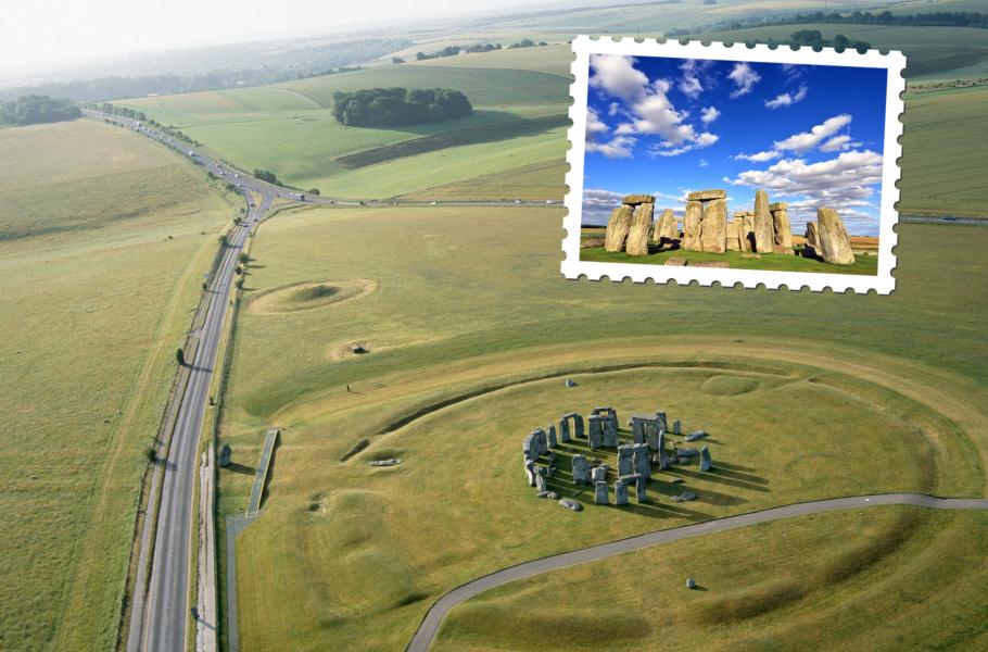 Majestátní Stonehenge stojí v lokalitě, kde podle odborníků už v 7. tisíciletí př. n. l. žili lovci a sběrači. Fotografie zachycují kamenný kruh jako dominantní monument na zelené louce, nicméně už neukazují dvojici rušných silnic, které ho svírají. Příliš ticha si tam tedy neužijete. (foto: Profimedia)