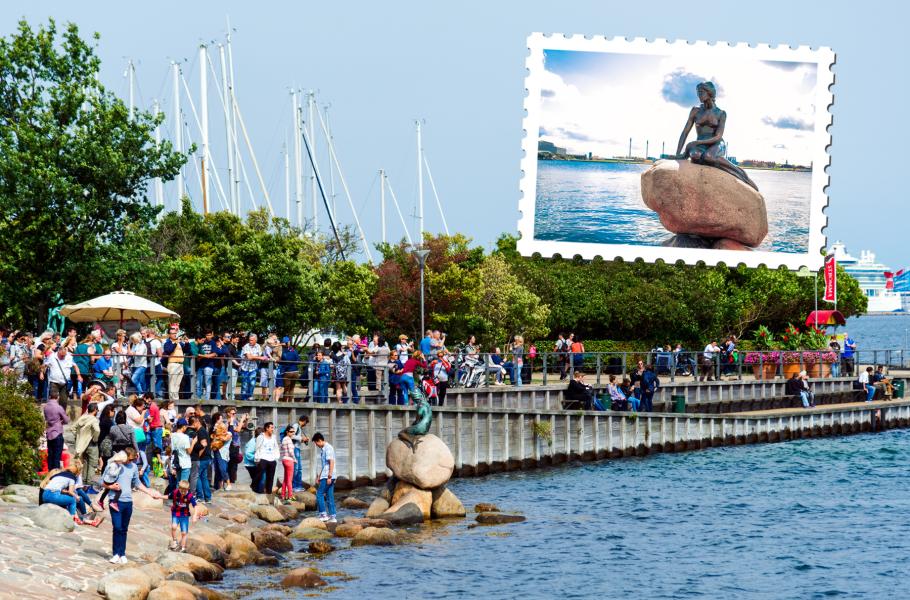 Malá mořská víla od Edvarda Eriksena zdobí břeh kodaňské promenády Langelinie. Pokud se k soše přiblížíte dostatečně, můžete ji zvěčnit tak, aby na pozadí s mořem působila majestátně. V reálu je však doslova malá – měří jen 125 centimetrů – a pokud ji obklopí houf turistů, nejspíš si jí ani nevšimnete. (foto: Shutterstock)