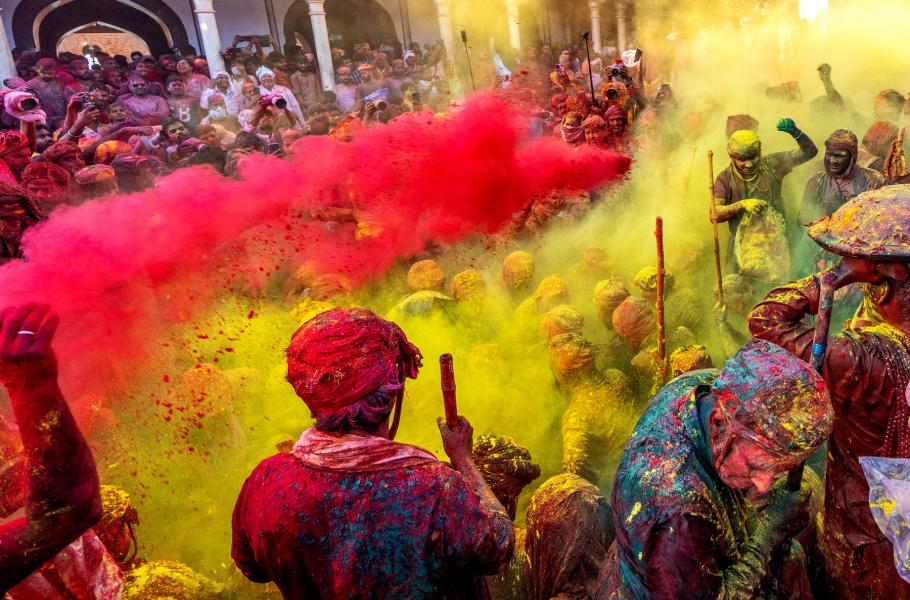 Hólí neboli oslava jara, barev i oddanosti božstvu se v různých částech Indie a Nepálu liší průběhem veselí. Například na severu po sobě lidé s oblibou házejí barevný prach, čímž vzdávají hold všem odstínům přírody, která se probouzí po zimě. (foto: Profimedia)