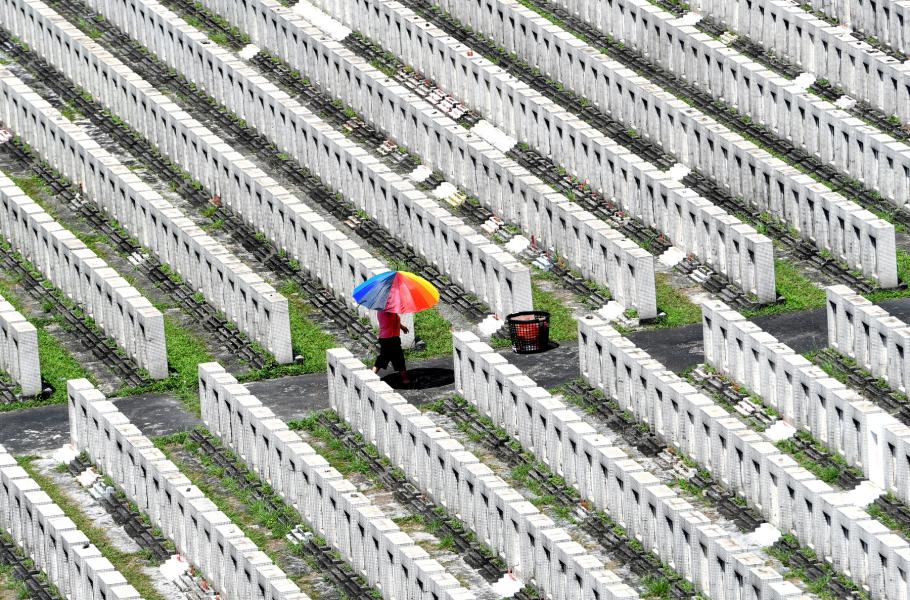 Patnáctý den po jarní rovnodennosti se v Číně a v okolních zemích s velkou čínskou komunitou slaví svátek čistoty a jasu: Rodiny navštěvují své zesnulé, věnují se úklidu na hřbitovech, hroby také zdobí a nabízejí předkům bohaté obětiny v podobě jídla. (foto: Profimedia)