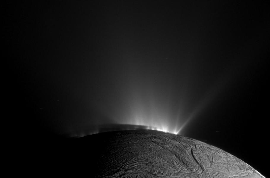 Ledové gejzíry na Saturnově měsíci Enceladu objevila Cassini v roce 2015. Podle vědců by mohlo jít o projevy podpovrchového oceánu, který je udržován tekutý slapovými silami Saturnu. Ohřátá voda pak tryská prasklinami v ledové kůře na povrch a vytváří tuto úžasnou podívanou