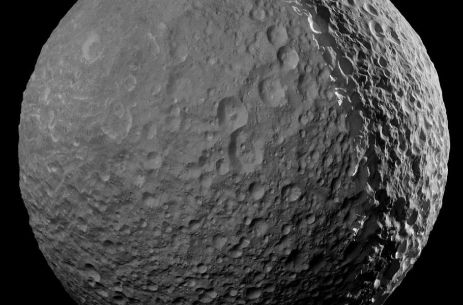 Mimas je ledový, krátery posetý měsíc Saturnu, s průměrem zhruba 400 kilometrů. Takhle jej sonda zachytila na konci ledna 2017 ze vzdálenosti 41 tisíc kilometrů.