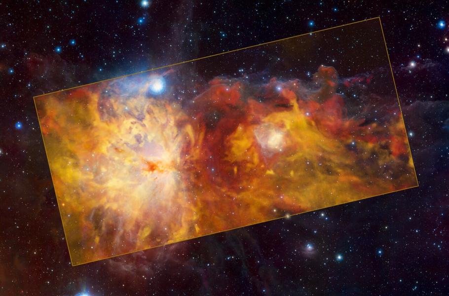 Evropská jižní observatoř v Chile nedávno zveřejnila elegantní rádiový snímek tohoto kosmického ohniště. Je založený na starších datech, která pořídil se svým týmem astronom Thomas Stanke. Bylo to v době, kdy na radioteleskop APEX (Atacama Pathfinder Experiment) nainstalovali nové zařízení SuperCam. Jak říká Stanke, když se někde objeví nový teleskop nebo přístroj, astronomové ho obvykle vyzkoušejí na nějakém objektu souhvězdí Orinonu, které je v tomto směru velmi vděčné.