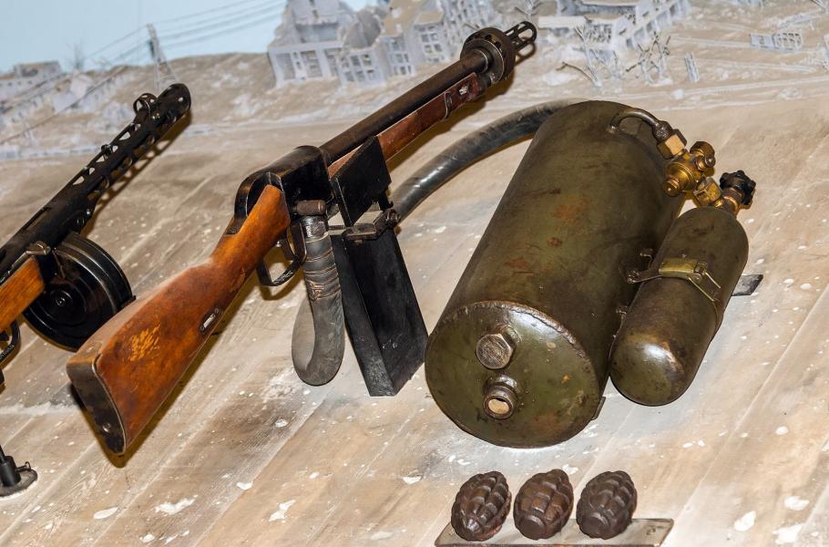 Ruský plamenomet ROKS s granáty F-1, Volgograddské muzeum. (foto: Wikimedia Commons, Mike1979 Russia, CC BY-SA 3.0)