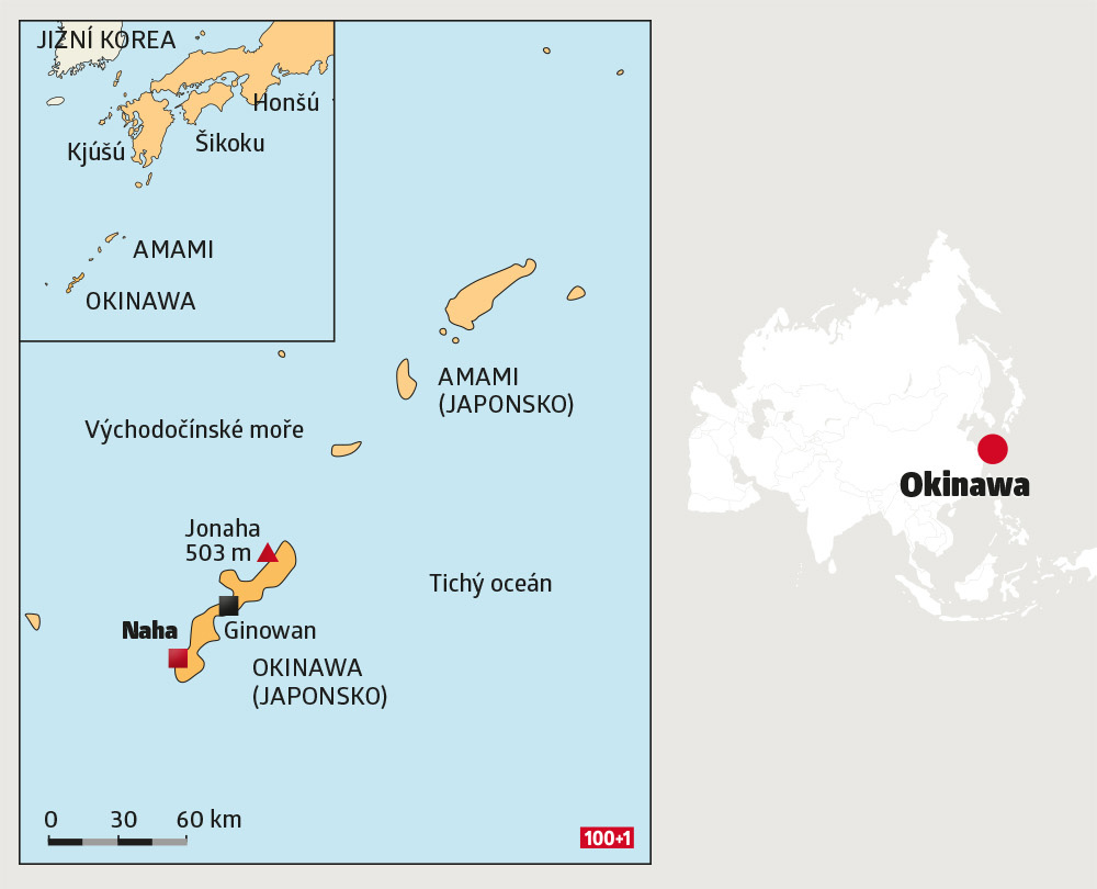 Pozornost každého návštěvníka Okinawy totiž záhy upoutá nebývale vysoký počet starých lidí. Země vycházejícího slunce proslula dlouhověkostí obyvatel: Tamní 130milionová populace oficiálně zahrnuje takřka 70 tisíc těch, kdo už oslavili 100 narozeniny. (Pro srovnání, v Česku žilo loni „jen“ 523 jubilantů.) Ostrov ovšem vyniká i na japonské poměry – podíl stoletých tam pětinásobně převyšuje zbytek státu. Také díky nim přitom dosud přežívá původní rjúkjúský jazyk, zařazený na seznam UNESCO, kterým už mladá generace nehovoří.