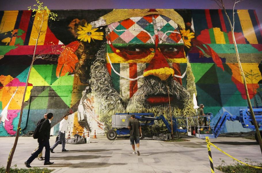 Graffiti sice není olympijskou disciplínou, pokud by ale bylo, byl by Eduardo Kobra žhavým kandidátem na zlatou medaili. Tento čtyřicetiletý brazilský umělec vytvořil v ulicích Ria obří graffiti s názvem Las Etnias (Etnika). Na ploše téměř tří tisíc metrů čtverečních vytvořil během dvou měsíců obrazy pěti tváří z různých kontinentů symbolizujících rozmanitost olympijských her. Svým rozsahem aspiruje Eduardův počin na zápis do Guinessovy knihy rekordů – podle všeho jde o největší pouliční graffiti vytvořené jedním člověkem.