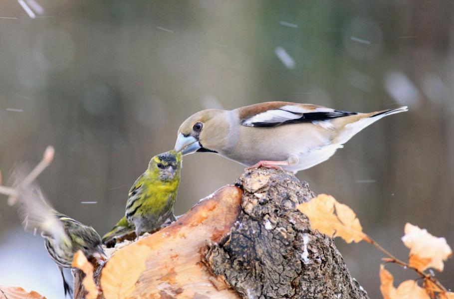 Opeření hosté u plných krmítek: Momentky zimních návštěvníků