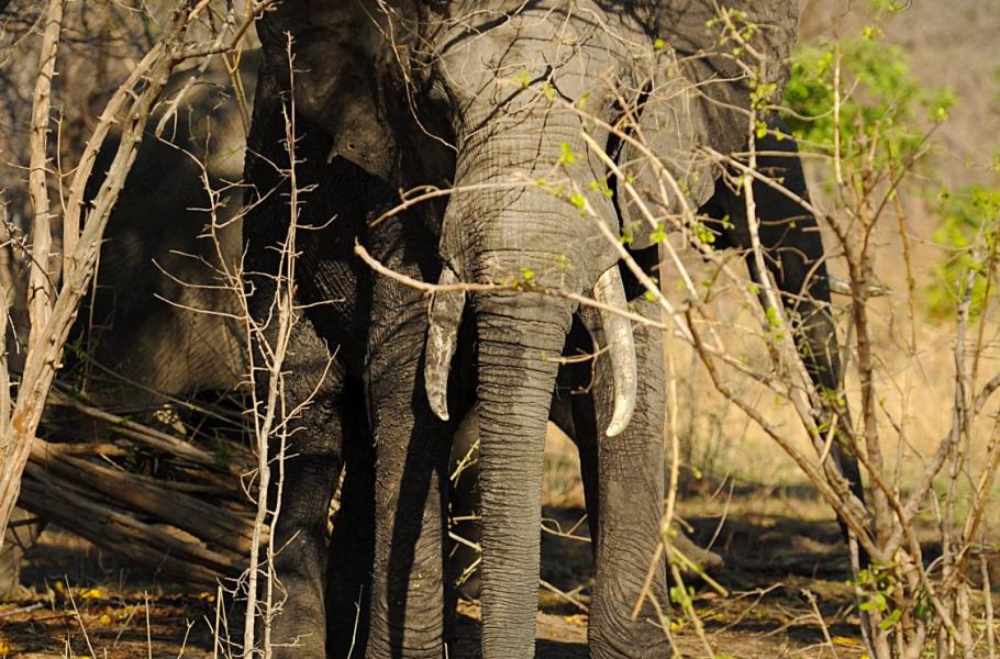 Chvíli jsme se museli „rozšifrovávat“, co vlastně vidíme. To, že se poblíž slonů pohybují opice, stáda antilop, žirafy či dokonce zebry, není nic neobvyklého. Různé druhy zvířat, které si obvykle ani potravně nekonkurují, se sdružují kvůli bezpečnosti. Ve společném stádu se často pohybují pakoně, zebry a impaly, protože každý z těchto býložravců má rád jiný druh trávy.