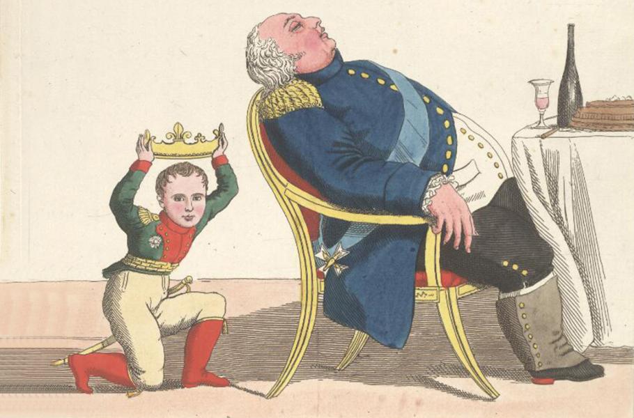 Malý Napoleon II. a Napoleon Bonaparte - francouzská karikatura. (zdroj: Wikimedia Commons, Bodleian Libraries, CC BY 4.0)