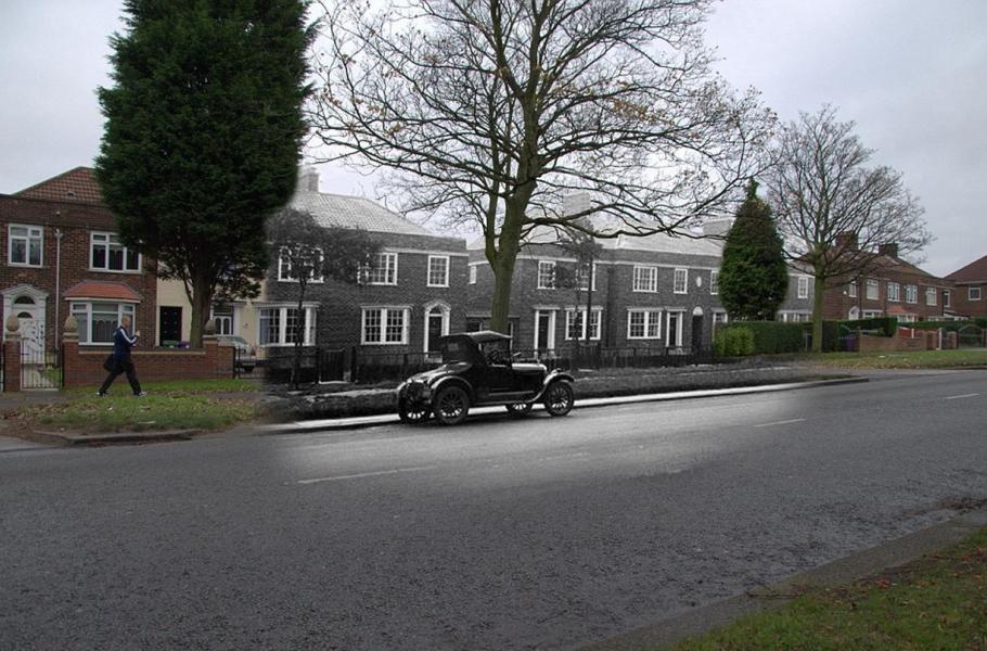 Liverpool v roce 1900 a dnes: Queens Drive ve východní části Liverpoolu.