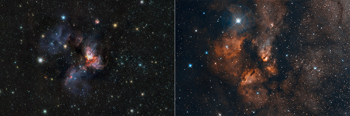 Silné záření těchto nově vzniklých hvězd způsobuje, že plyn, který hvězdokupu obklopuje, jasně září a vytváří růžové odstíny, které vidíme v RCW 38. Je to skutečně úchvatná podívaná! Přesto nám ve viditelném světle zůstává mnoho hvězd v hvězdokupě RCW 38 skryto, protože nám v pohledu na ně brání všudypřítomný kosmický prach.