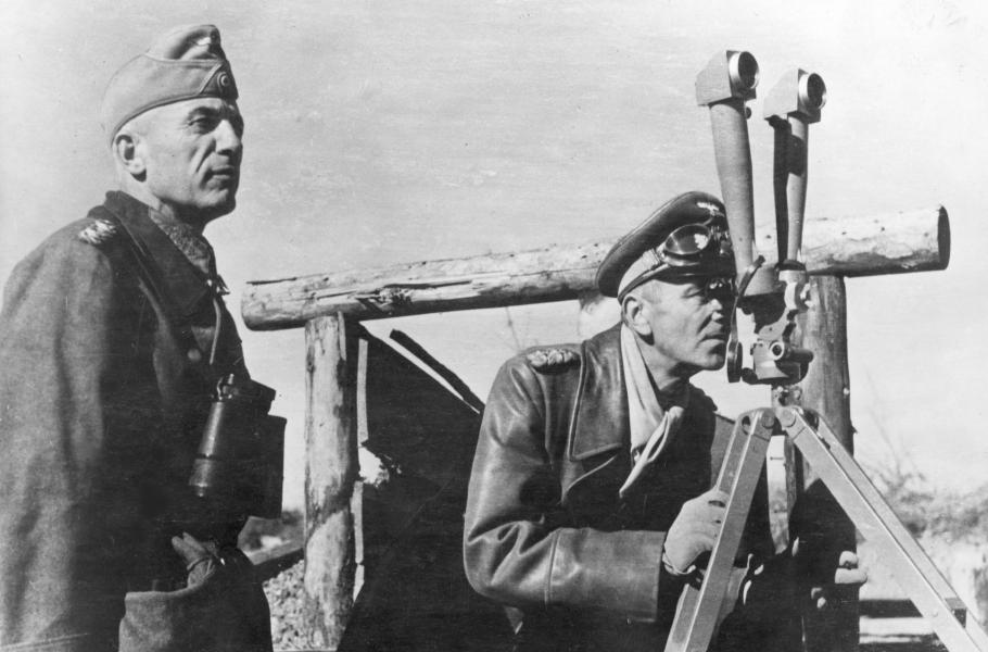 Hermann Hoth (vlevo) pozoruje sovětské pozice společně s generálem Paulusem u Stalingradu.
