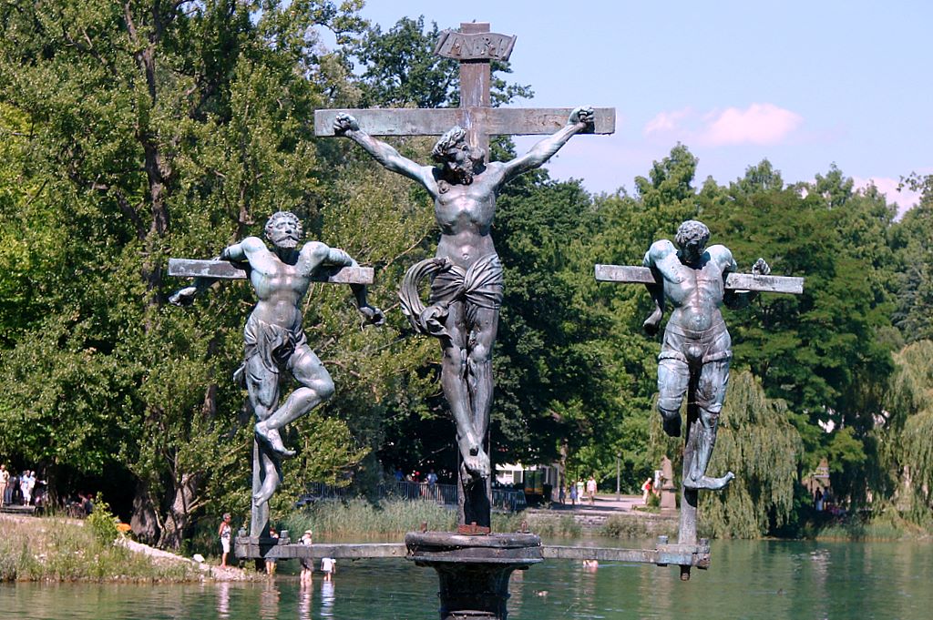 Ve 13. století obdržel ostrůvek Mainau darem řád německých rytířů, který ve středověku patřil vedle templářského a maltézského řádu k nejbohatším a nejmocnějším. Poklidné rozjímání rytířů přerušila až třicetiletá válka, kdy na ostrov vtrhli švédští vojáci a nemilosrdně ho vydrancovali. Tehdy vznikla legenda o tak zvaném „švédském kříži“. Jedná se o velmi naturalistické, manýristické bronzové sousoší Ježíše se dvěma odsouzenci v životní velikosti. Údajně stálo u zámeckého kostela a Švédové ho díky zázraku nebyli schopni odvézt, proto ho raději hodili do jezera. Podle legendy sousoší vylovili pobožní sedláci a vztyčili je u vstupu na ostrov. Poté se stal významným poutním místem.