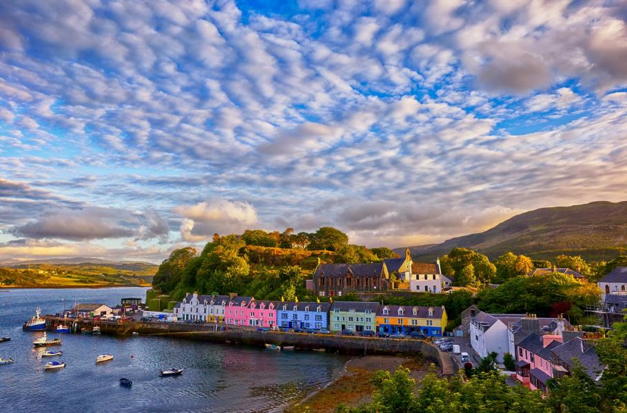 Z nebe nad přístavní vesničkou Kyleakin, ležící na ostrově Skye, prší 250 dní v roce. To je sice úctyhodný výkon, ale asi byste sem kvůli tomu cestovat nechtěli. Daleko spíše vás zaujme barva samotné oblohy, která uchvátila dokonce i Karla Čapka, když navštívil ostrov v roce 1924. Popsal ji, jak už bylo jeho zvykem, košatě a rozmanitě, ale přesto měl pocit, že skutečnou barvu vyjádřit nedokázal. Před dešťovými mraky přitom stačí ujet pár kilometrů po překvapivě udržované silnici a najednou pochopíte, z čeho pramenila jeho nejistota.