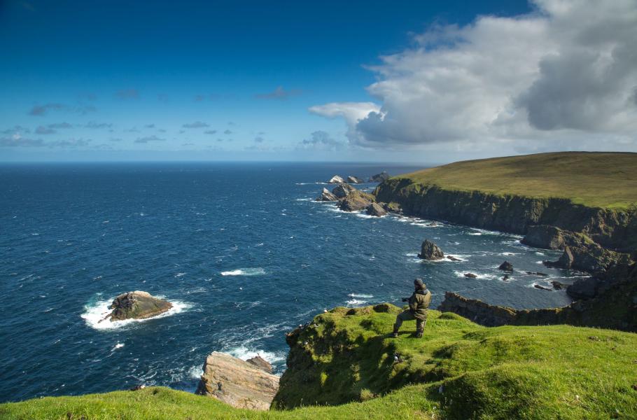 Shetlandy jsou zajímavé nejen díky své fauně a flóře. Návštěvníky okouzlí také nádherné pobřežní scenérie, i když modrá obloha není pro shetlandské počasí zrovna typická.