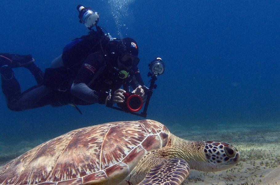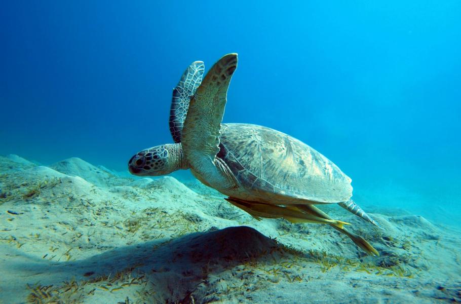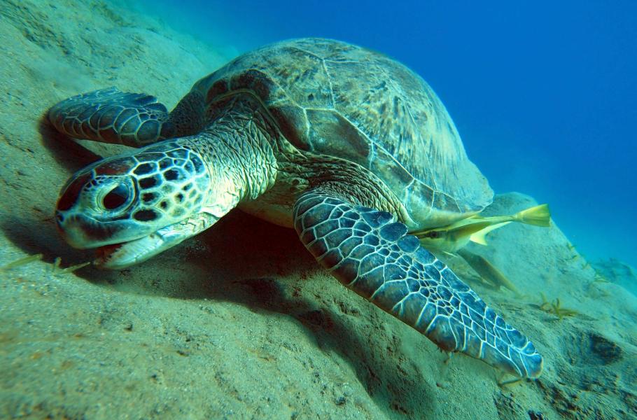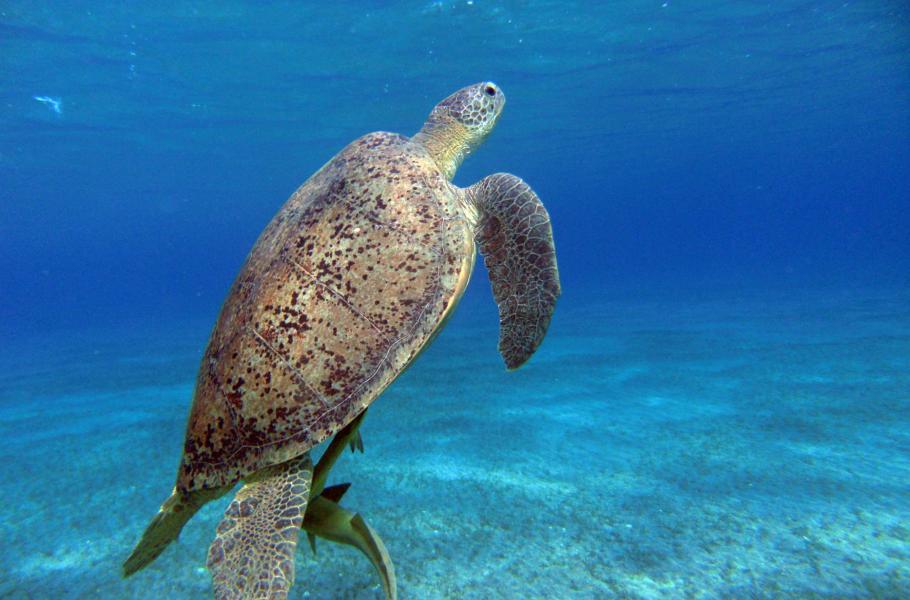 Kareta obrovská (Chelonia mydas) - želva se musí pravidelně nadechovat u hladiny, jinak by se utopila. Pokud ji budeme v tento moment honit a chtít vyfotit příliš zblízka, může se vylekat a místo, aby se v klidu nadechla, vydá zbytek vzduchu na únik. Může to pro ni mít fatální následky.