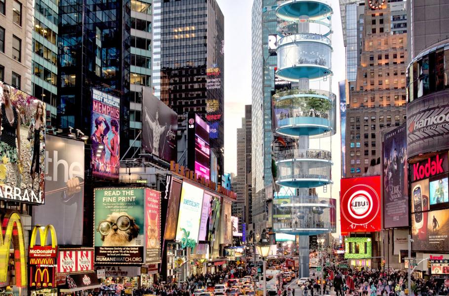 Times Square, oblast Manhattanu mezi Broadway a Sedmou avenue, bývá nazývána křižovatkou světa. Místo plné obchodu, umění, lidí a světelných reklam je jedním ze symbolů New Yorku. Vybudovat na Times Square nový park pro aktivní relaxaci i pasivní oddech je prakticky nemožné. Není na to dost místa. Jedině snad, kdyby šlo o vertikální stavbu.