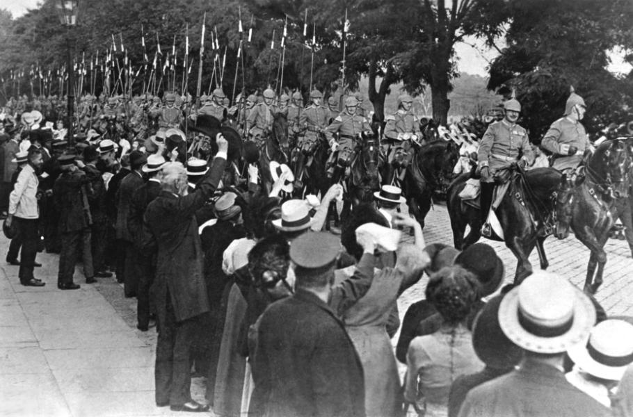 Když armáda císaře Viléma II. v srpnu 1914 vyrazila do útoku na západ, v její struktuře figurovaly i početné jízdní jednotky, které měly provádět zejména průzkum a obchvatné manévry. Tito muži se pak v Belgii a Francii střetli s kavaleristy, kteří na kontinentě působili jako součást britských expedičních sil.