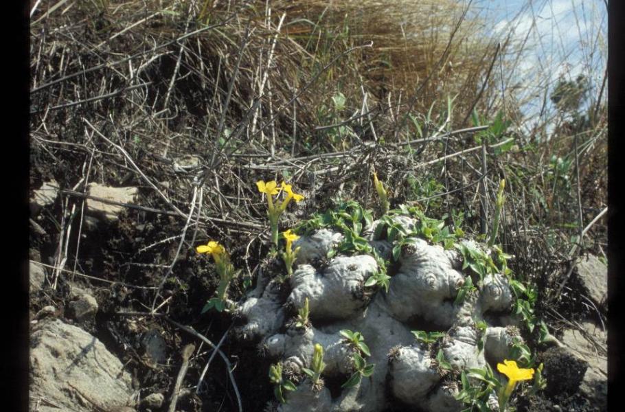 Kvetoucí klenot pohoří Itremo v centrálním Madagaskaru. Lze jej s nadsázkou nazvat nejkrásnější „bramborou“ z oblasti Indického oceánu