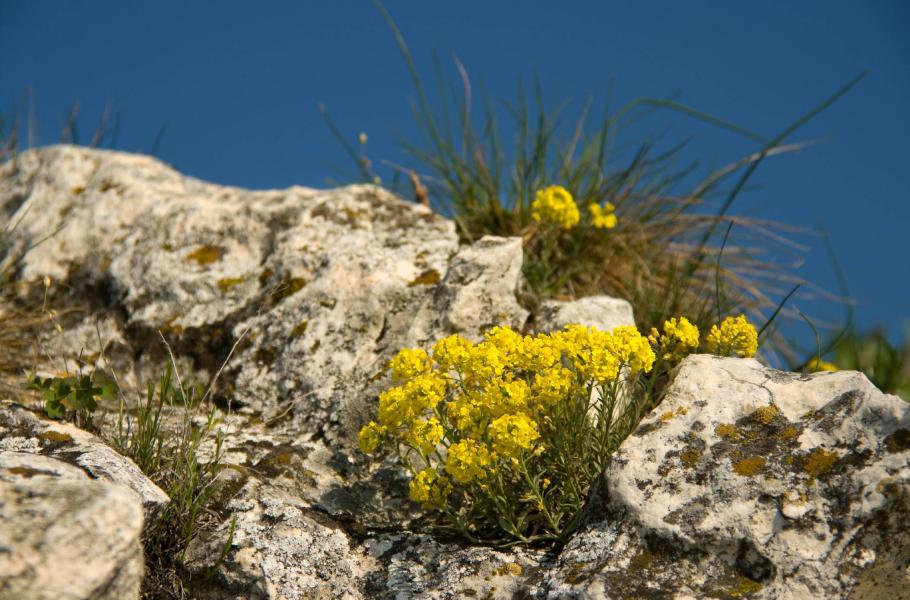 Díky různorodému podkladu se v těchto místech vyvinulo i pestré druhové složení, které je závislé především na hloubce půdy. Do mozaiky rostlinných ekosystémů patří i společenstva skalních stepí, rostoucí na prudkých svazích. Rostliny v rozpukané skalní stěně využívají každou škvírku podobně jako trávy hlubších půd na rovnějších částech. Mezi tyto pionýrské druhy, osidlující nehostinná skalní stanoviště, patří například kostřava sivá, tařice skalní a tařice horská, hvězdnice zlatovlásek, pěchava vápnomilná nebo místní endemický poddruh hvozdík Lumnitzerův pálavský, jenž se vyznačuje množstvím fialových květů a omamnou vůní.