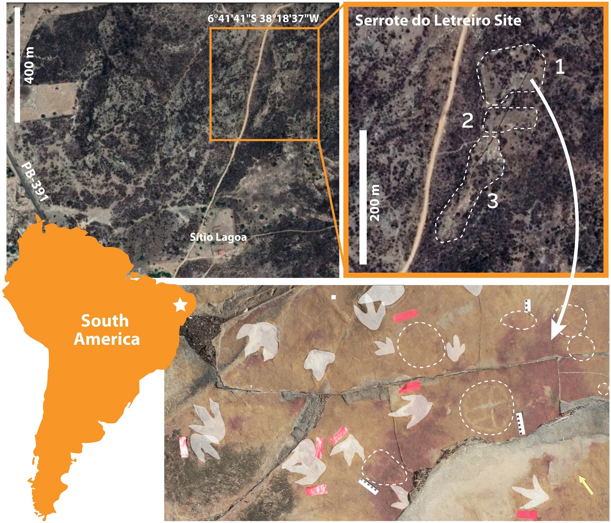 V severovýchodní Brazílii se nedávno střetla paleontologie s archeologií. Na lokalitě Serrote do Letreiro ve státu Paraíba na severovýchodě Brazílie se nacházejí tři velké skalní výchozy, kde byly objeveny četně fosilizované stopy teropodních, sauropodních a iguanodontních dinosaurů ze spodní křídy, staré asi 145 až 130 milionů let.
