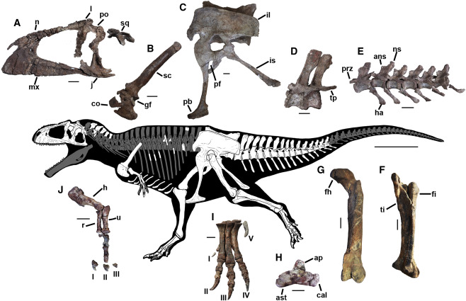 Rekonstrukce kostry objeveného dinosaura (foto: Current Biology, Jorge A. Gonzalez, CC BY-SA 4.0)