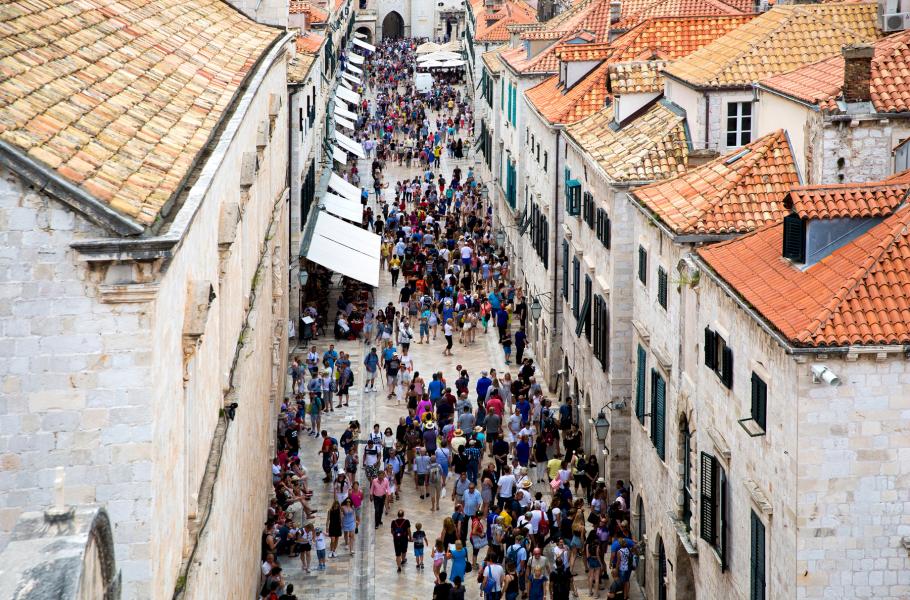 Do chorvatského Dubrovníku proudí davy návštěvníků zejména v letních měsících, během posledních roků se však zástupy turistů ještě rozrostly, a to kvůli ikonickému televiznímu seriálu Hra o trůny: Historické centrum města se totiž od roku 2015 objevovalo v některých jeho epizodách. V následujících dvou letech stoupl příliv cizinců bezmála o 10 % a uvedený trend přetrval.