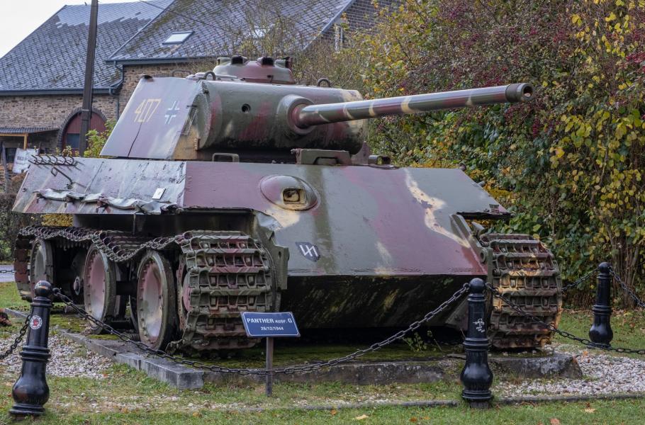 Německý tank Panther (na snímku stroj z památníku v Belgii) představoval koncem roku 1944 nejčastějšího protivníka amerických shermanů. (foto: Shutterstock)