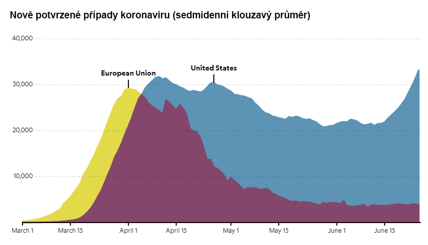 Výsledkem uspěchaného rozvolňování je opětovný strmý nárůst počtu nových případů v USA a zaplavení nemocnic velkým množstvím vážně nemocných. Odborníci upozorňují, že ve Spojených státech spíše vrávorají od extrémního lockdownu k extrémnímu rozvolnění, aniž by využívali celé řady dalších možností mezi těmito extrémy. Jak přitom ukazují průzkumy stavu imunity vůči covidu-19 mezi Američany, nemocí bylo zasaženo stále jen relativně málo lidí a koronavirus má tím pádem k dispozici stále značný prostor. Další věc je, že imunitní obrana po prodělané infekci covid-19 je zřejmě jen velice krátká, hlavně u lidí s mírným průběhem.