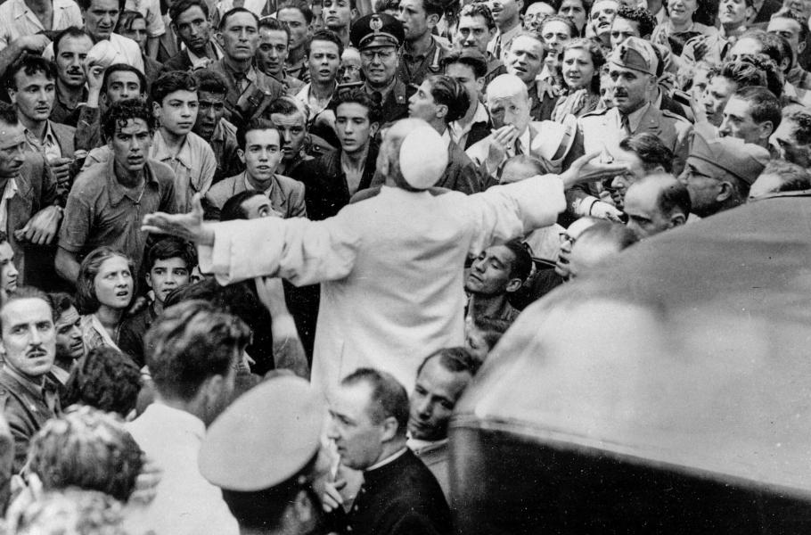 Papež Pius XII. na návštěvě Lateránu po bombardování Říma roku 1943. (foto: Wikimedia Commons, Associated Press, CC0)