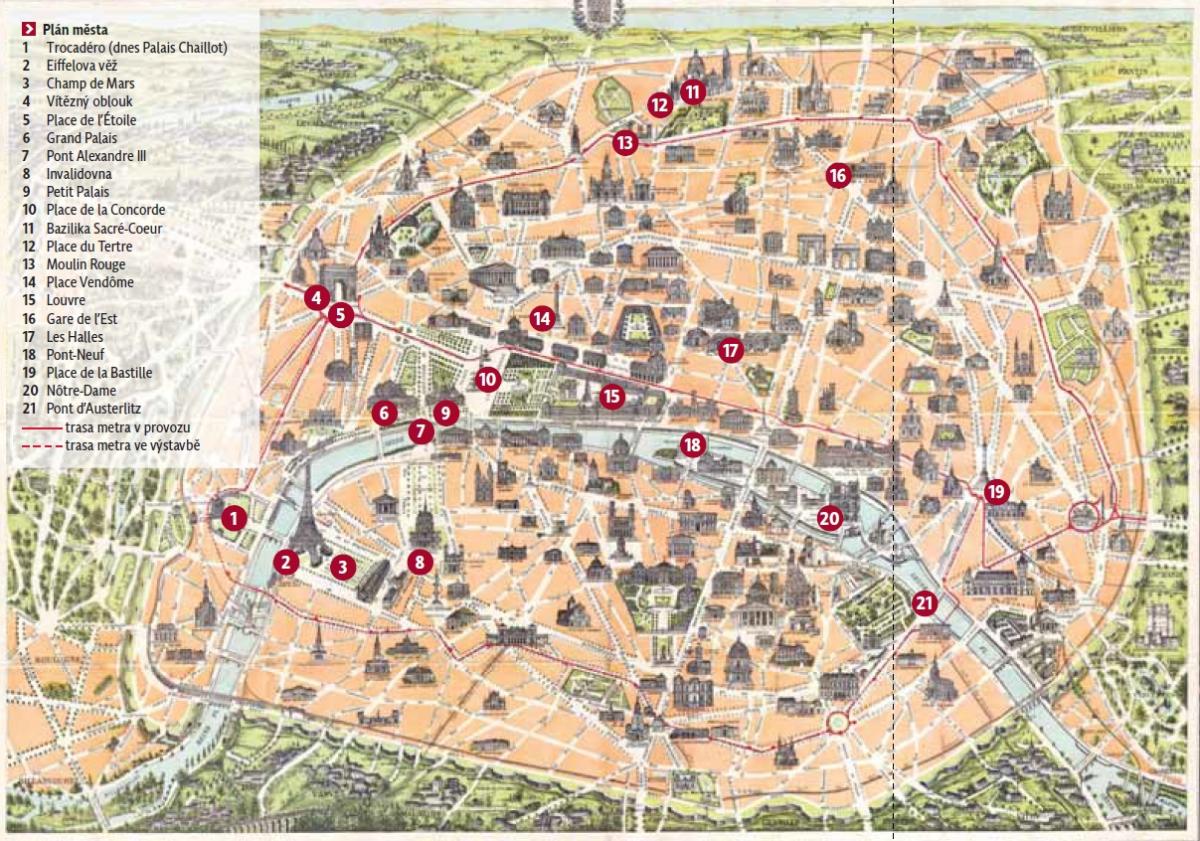 Z Čech se přijíždí s přestupem v Německu na Gare de l’Est, Východní nádraží (přímý Západní expres začne z Prahy do Paříže jezdit až dvě desetiletí po vaší návštěvě). Pas není povinný! Elektrifikované metro, Métropolitaine, je v provozu od roku 1898, ale má jen dvě linky. První vede od Vincennes k bráně Maillot přes Louvre či Place de la Concorde a Champs-Elysées, druhá je okružní. Linek Omnibuses, patrových autobusů, má Paříž bezpočet, navíc tu jezdí na devět desítek linek tramvajových. Průvodce ovšem doporučuje na prvním místě fiakry. Cena jízdenek činí v závislosti na délce trasy 10 až 25 centimů, metro je nejdražší.