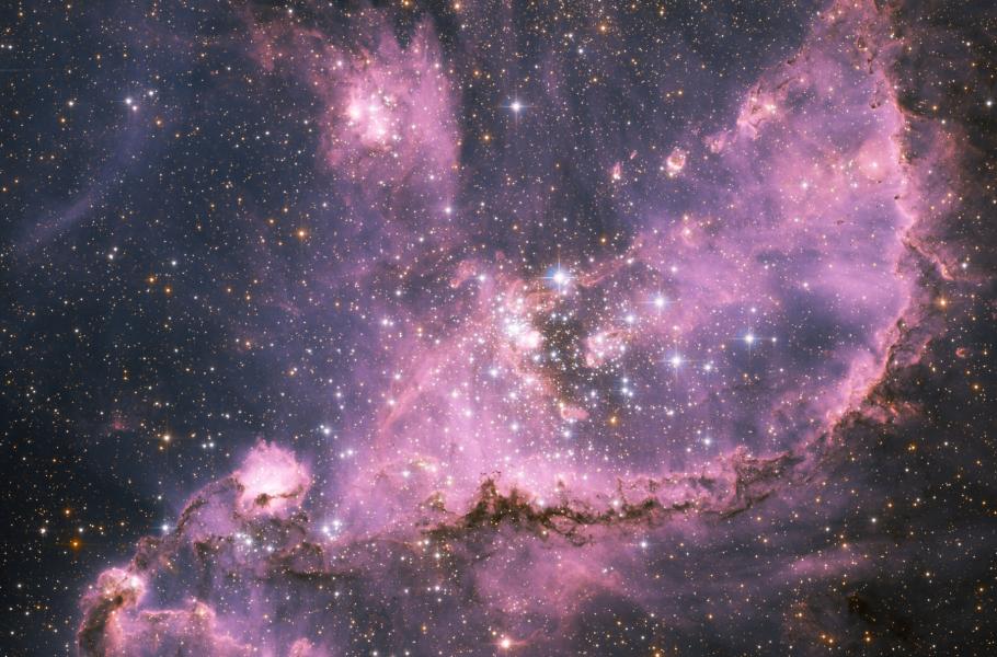 Otevřená hvězdokupa NGC 346 obklopená mlhovinou představuje nejjasnější místo zrodu stálic v sousedním Malém Magellanově mračnu. Intenzivní záření a hvězdný vítr, vysílané do okolí mladými hmotnými hvězdami, rozfukují zářící plyn a vytvářejí jemnou mlhovinu připomínající pavučinu. NGC 346 obsahuje mnoho velmi mladých stálic, jejichž věk se odhaduje na pouhé miliony roků. Silný hvězdný vítr vytvářený hmotnými stálicemi stlačuje okolní plyn, a reprezentuje tak rozhodující proces k nastartování dalších epizod hvězdotvorby. Mlhovina okolo hvězdokupy je emisní: Její členky zahřívají mezihvězdný plyn, takže sám svítí.