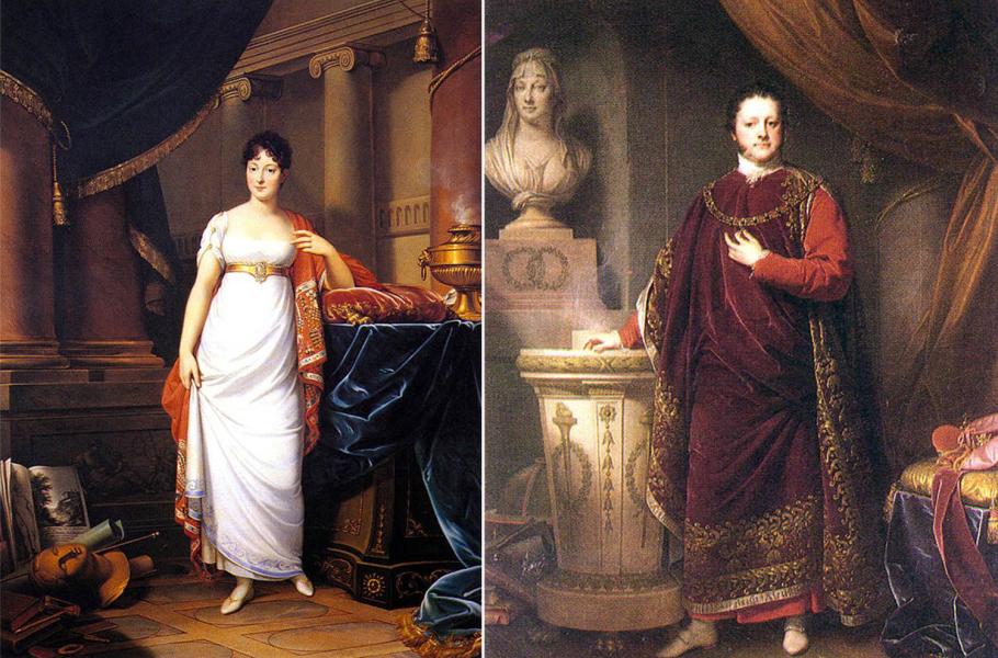 Pavlína ze Schwarzenberku na kopii posmrtného portrétu od Charlese Salera. Atributy vlevo na zemi připomínají Pavlíninu zálibu v umění, povalené přesýpací hodiny smrt.