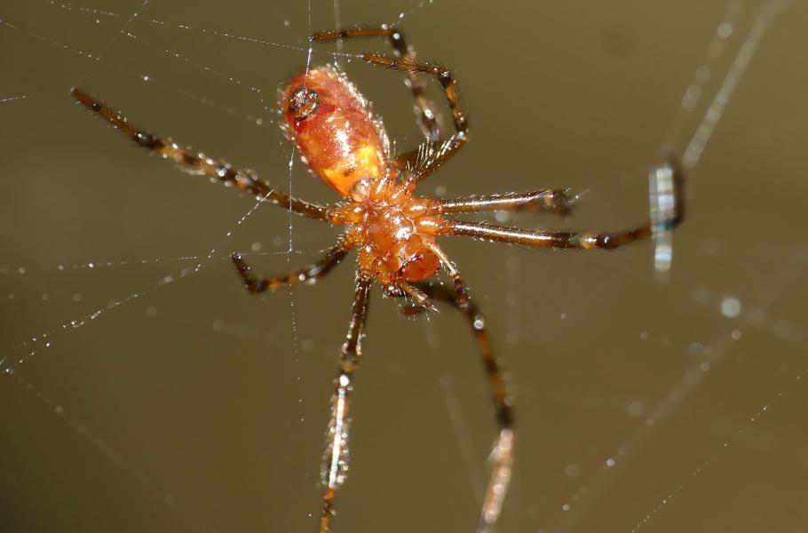 Snovačka pospolitá (Anelosimus eximius) je jedním z mála druhů pavouků, kteří žijí společensky. Vyskytuje se na Malých Antilách a v Jižní Americe. (foto: Wikimedia Commons, Bernard Dupont, CC BY-SA 2.0)
