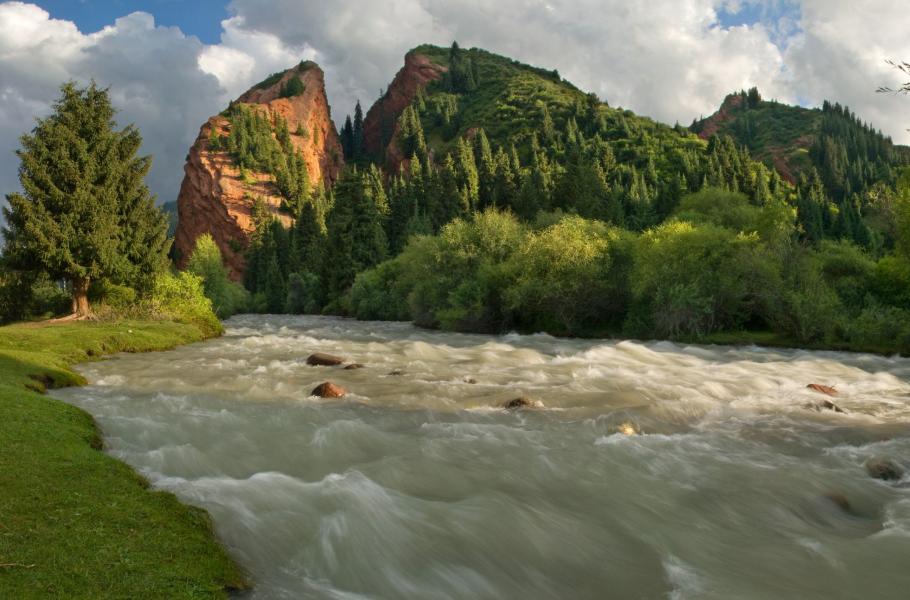 Vysoké hory, nebesky modrá jezera, stáda polodivokých koní a bělostný třpyt jurt. To je typický obrázek krajiny v Kyrgyzstánu, kde hory přesahující výšku 3 000 metrů nad mořem zabírají třetinu země. Esenci této krajiny můžete nasát na treku k jezeru Alakol