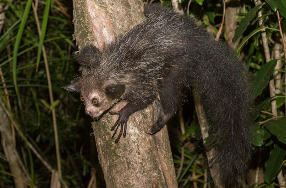 Ksukol ocasatý, známý také jako Aye aye, je možná nejpodivnějším zástupcem řádu primátů. Tato vzácná poloopice žijící na Madagaskaru má neobyčejně velké uši, permanentně dorůstající řezáky a zejména neobyčejné prsty na horních končetinách.