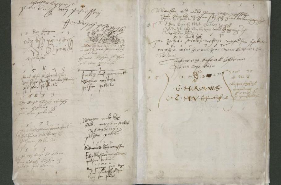 Zápis s připojenou kresbou:„Má klisna klepouchá /a má žena poctivosti nemá. /Pil sem pokutu. Simeon Běšín z Běšin“