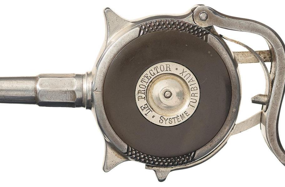 S návrhem pistole o velikosti cibulových hodinek, jež se vejde do dlaně, přišel v roce 1882 francouzský inženýr Jacques Turbiaux: Speciální zařízení s otočným nábojovým bubnem pojalo až osm kusů munice. Nestřílelo se pomocí klasického kohoutkového mechanismu jako v případě revolverů – střelec držel hlaveň mezi prostředníkem a ukazovákem a vypálil tak, že zbraň zmáčkl v zápěstí. Miniaturní zařízení, působící na první pohled jako sen každého špiona, mělo však velmi špatný dostřel a drobná munice spíš zraňovala, než zabíjela. Po vyprázdnění zásobníku se navíc musela zbraň kvůli nabíjení úplně rozebrat.