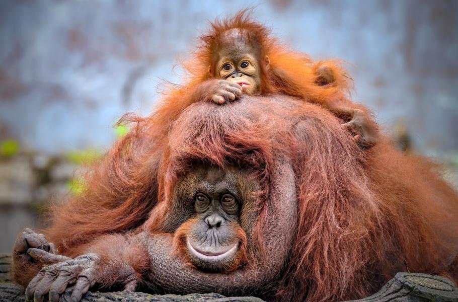 Mláďata orangutanů se obvykle rodí jako jedináčci a samice je přivádí na svět v hnízdě, které pro ně připravila víc než třicet metrů nad zemí v koruně stromu. Po narození váží malí orangutani zhruba jen 1,5 kilogramu a zůstávají na matce zcela závislí – sami nezvednou ani hlavu. Kojenecká fáze pak trvá tři roky. (foto: Shutterstock)