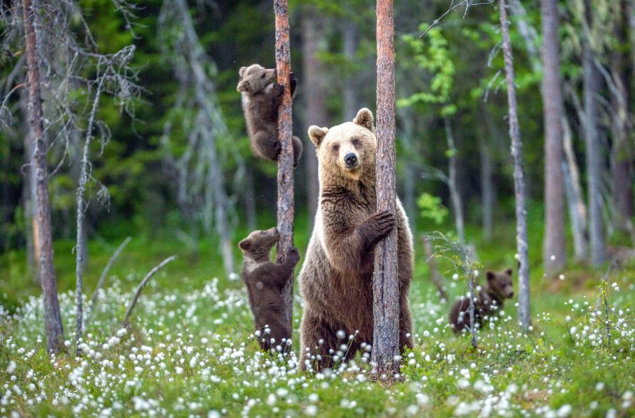 Medvíďata se rodí malá a bezbranná, nemají srst a zpočátku ani nevidí. Během několika měsíců však péče matky zesílí a drobotina začne skotačit. Zvídavá mláďata se samice drží první dva až tři roky života, během nichž se mimo jiné učí, jak ve volné přírodě přežít. (foto: Shutterstock)